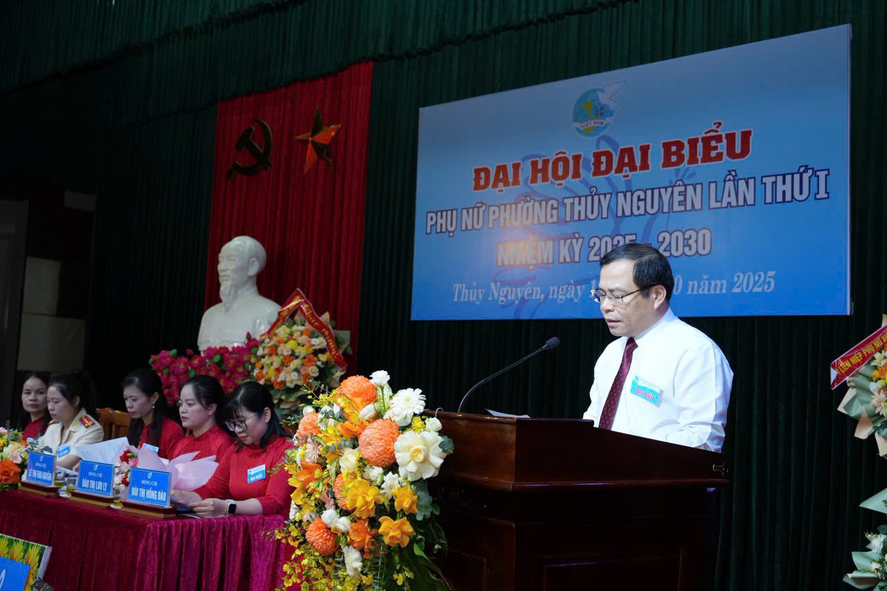 Đồng chí Phạm Hưng Hùng - Thành ủy viên, Bí thư Đảng ủy, Chủ tịch Hội đồng nhân dân phường phát biểu chỉ đạo Đại hội🍀 Đại hội công bố quyết định chỉ định Ban Chấp hành gồm 39 đồng chí, chỉ định đồng chí Lê Thị Thu Huyền giữ chức Chủ tịch Hội LHPN phường Thủy Nguyên, nhiệm kỳ 2025-2030. Với tinh thần “Đoàn kết - Sáng tạo - Khát vọng- Phát triển”, Đại hội thành công tốt đẹp, mở ra chặng đường mới đầy khát vọng và niềm tin, góp phần xây dựng quê hương Thủy Nguyên ngày càng giàu đẹp, văn minh.